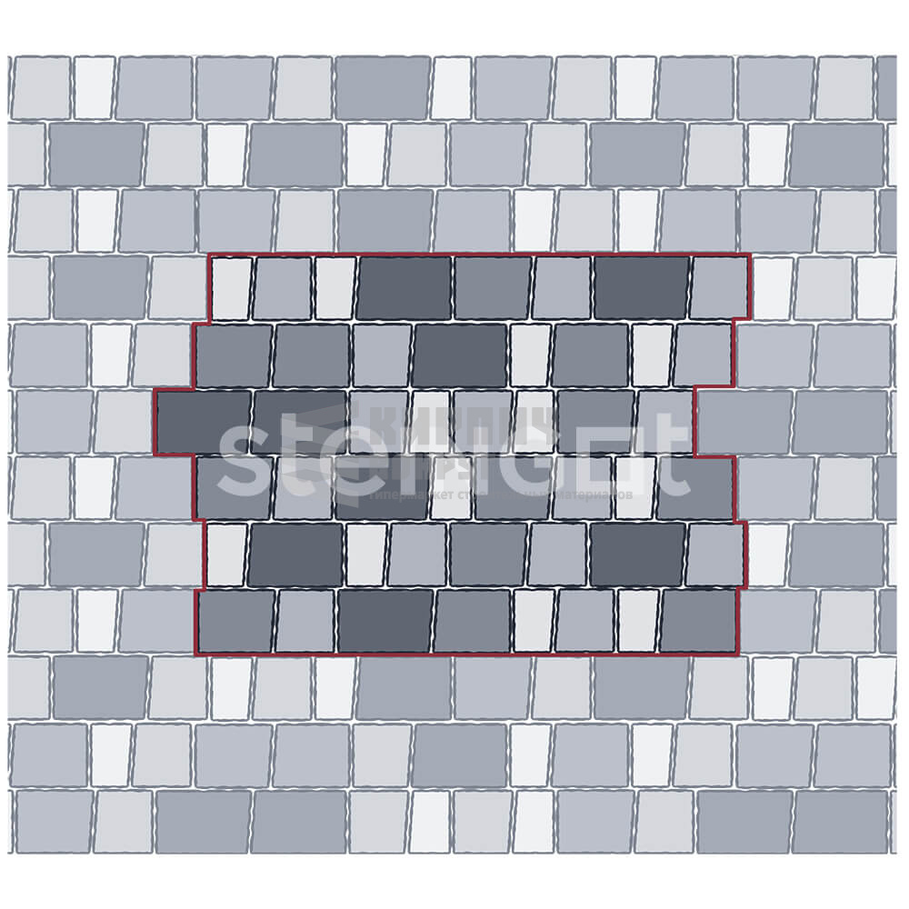 Данная форма может быть изготовлена в любом цвете из палитры производителя. Минимальная площадь заказа 300м2. Срок изготовления от 2 недель. Противоскользящая плитка, созданная для объектов с повышенными требованиями к безопасности: специально разработанная фактура поверхности обеспечивает максимальное сцепление с обувью и колесами во время дождя и гололедицы. Дизайн этой формы удачно имитирует природный колотый камень. При этом отсутствие фасок и минимальные швы позволяют комфортно перемещаться по поверхности мощения на высоких каблуках, колясках, самокатах. Красивая и безопасная плитка с уникальным дизайном для людей, заботящихся о комфорте своей семьи.